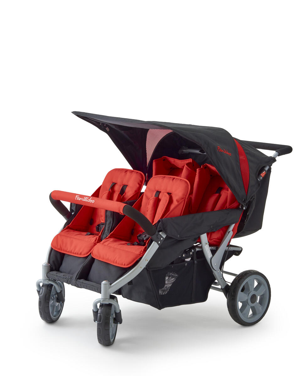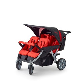 En praktisk och stabil sittvagn med plats för 4 barn. Framhjul med svirvelfunktion gör det enklare att svänga. Vagnen är utrustad med fotbroms med hjullåsning och fotstödet är justerbart. Enkel att fälla ihop. Vattenavstötande tyg med reflex där sätena går att fälla 45° till viloläge och barnsele ingår. Avtorkningsbar. Stor och rymlig varukorg under sätena. Sittmått: cirka 30 cm. Mått: B84xL110xH110 cm. Max vikt: 18 kg per säte. Vagnen rekommenderas för användning för barn från 6 månader. Levereras omonterad.