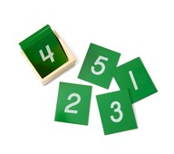 10 rektangulära träbrickor med sandpapperssiffror från 0-9. Används för att lära sig namnen på siffrorna och förknippa namnen med rätt form. Tränar muskelminnet i hur siffrorna skrivs genom att spåra formen i sandpapper. Förbereder för skrivning av siffror. De 10 sandpapperssiffrorna i hög kvalitet är monterade på släta, gröna träbrickor. Från 4 år.