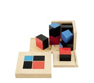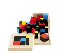 Innehåller 4 lådor med 4 set cylindrar av trä. Varje set har sin färg och sina dimensioner. Utvecklar ögats och handens känsla för dimensioner, tränar rumsuppfattning och uppmuntrar till observation av omgivningen. Tränar förmågan att kunna urskilja även små skillnader i storlek. Finmotorik och koordination utvecklas. Varje set av cylindrar förvaras i lådor av bokträ där locket är målat i samma färg som cylindrarna. Från 3 år.