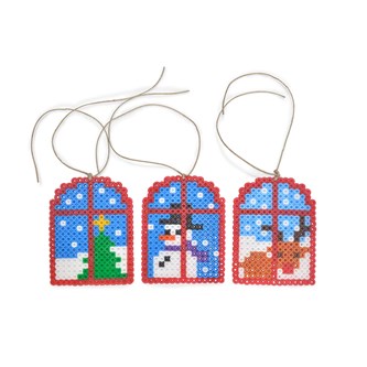 1. Skriv ut bilden på julgransdekorationen i färg, eller ha bilden uppe på skärmen för att följa mönstret. Stryk ihop pärlorna med ett bakplåtspapper mellan motivet och strykjärnet. Tänk på att stryka motivet långsamt och ganska länge så att pärlorna smälter ihop ordentligt, men se till att pärlorna inte smälter fast i plattan. Låt motivet svalna ordentligt innan det lossas från plattan. En strumpsticka är ett bra hjälpmedel för att lossa pärlade motiv från underlaget. Både strykjärn och smält plast är mycket varmt och kan ge brännskador. Mindre barn behöver vuxens hjälp och överinseende vid strykningen.