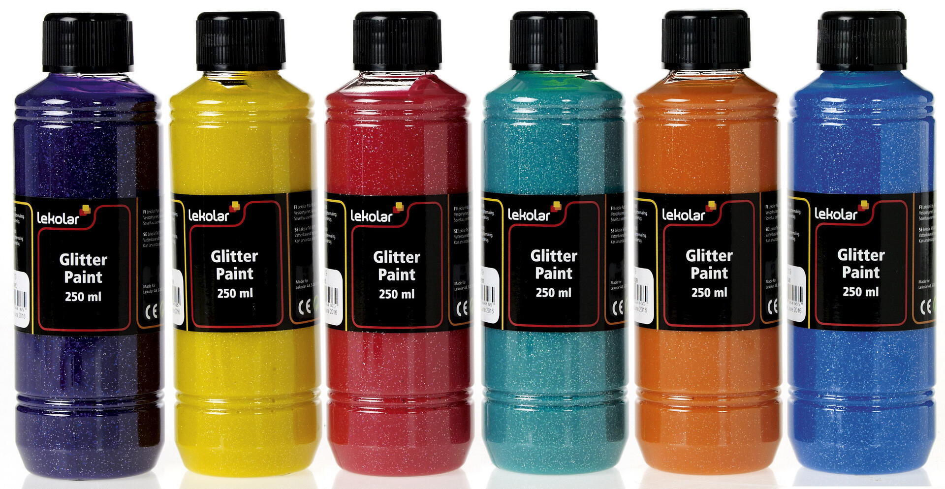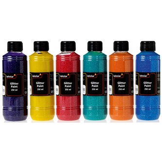 6x250 ml/fp. Vattenbaserad glitterfärg som torkar transparent. Färgen kan användas på de flesta underlag som papper, kartong, styropor, glas m.m. Torktid ca 60 min. Förpackningen innehåller lila, gul, röd, grön, orange och blå. Komplettera med vår praktiska pump 41007. PVC-fri.