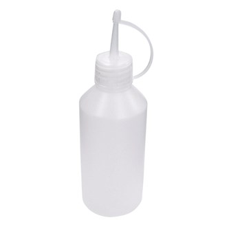 Transparent plastflaska med spetskapsyl för lim och målning. Spets klipps enkelt av till lämplig längd beroende på innehåll. Rymmer 250 ml. Av polypropen. PVC-fri.