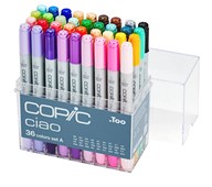 36 st/fp. Permanent penna med dubbla spetsar, mediumbred i ena änden och pensel i den andra. Påfyllningsbar och utbytbar spets. 36 olika färger.