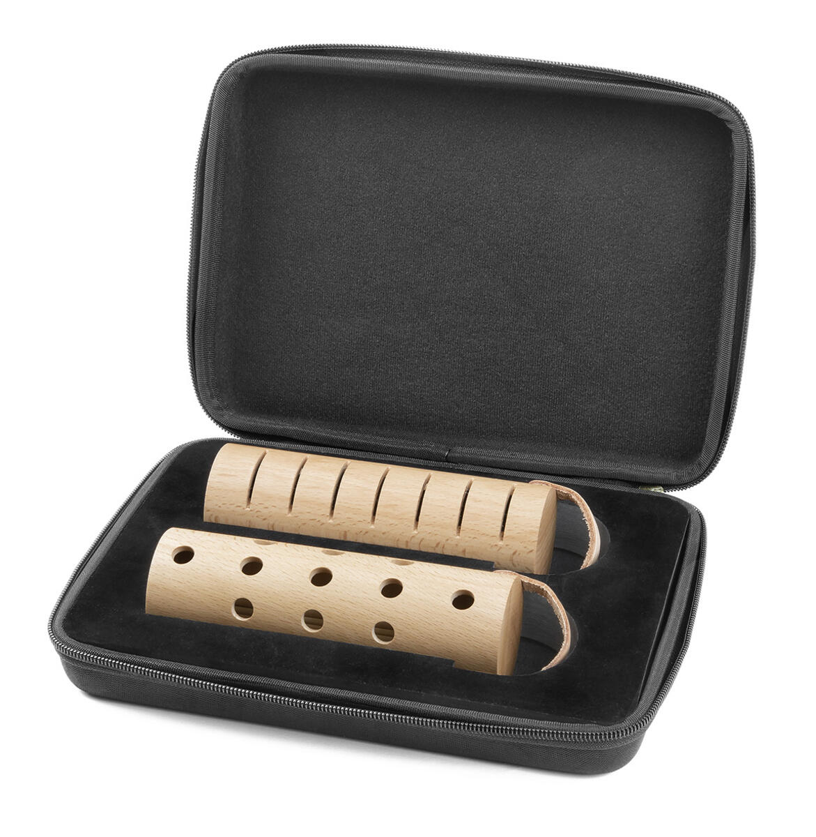 Tio olika instrument förpackade i en genomskinlig väska. Innehåller: tamburin, triangel, 2 maraccas, 2 kastanjetter, 2 claves, rytmklappa, guiro (gurka) med slagträ, 2 fingercymbaler, rasselpinne och bjällerskallra. Från 3 år.