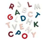 67 st/fp. Magnetiska träbrickor med tryckta bokstäver. Fördelade i vokaler och konsonanter i olika färger. Inklusive förvaringspåse. Avsett för lärarledd undervisning. Mått: 3,2x3,2x0,7 cm. PVC-fri. Från 3 år.