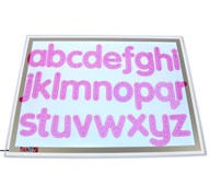 Mjuka gemena bokstäver med en taktil, upphöjd yta. Barnen kan följa bokstavens form med fingertoppen och träna på bokstävernas namn. Bokstäverna är transparenta och kan med fördel användas på ett ljusbord, men även i vatten, på golvet eller i sandlådan. Kan tvättas i diskmaskin. Innehåller ej bokstäverna Å, Ä, Ö. Höjd 12 cm. Av silikon. PVC-fri. Från 3 år.