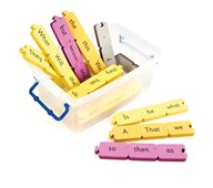 Med 84 engelska ord som byggs som ett domino. Hjälper barnen att identifiera och lära sig orden, och hur man sätter samman dem till nya. Med detta paket kan man skapa hundratals olika ord. PVC-fri.