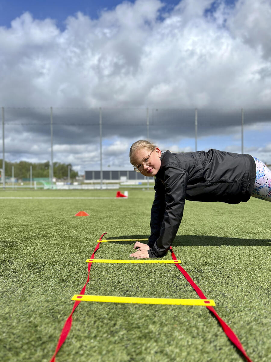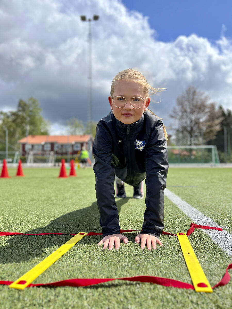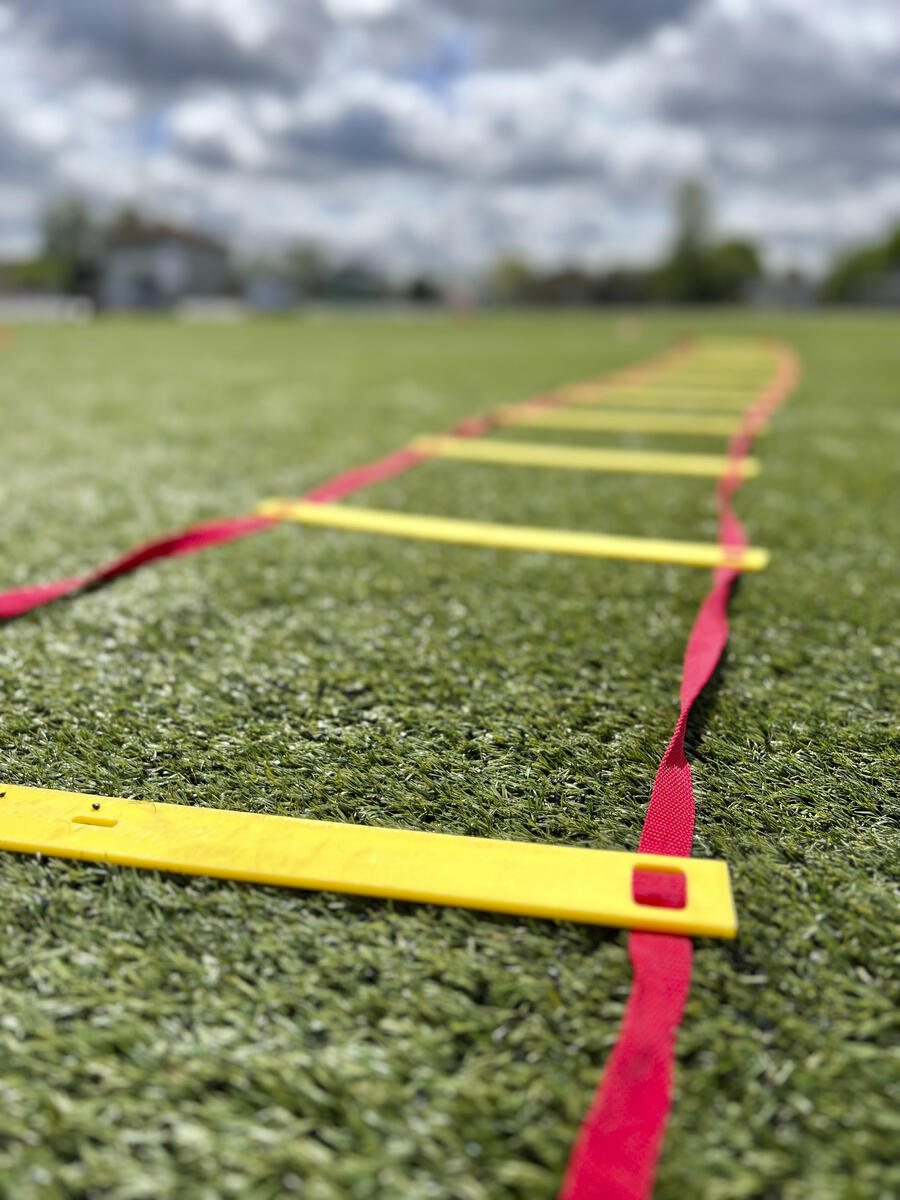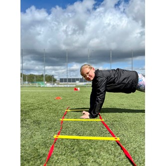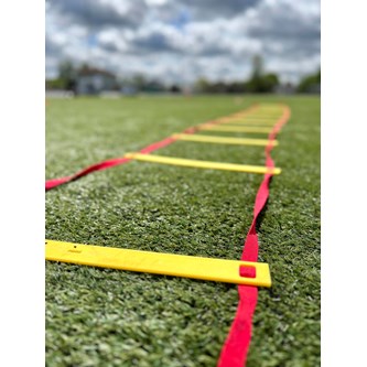 Med löpstegen kan man träna spänst, koordination och snabbhet. Den lämpar sig väl att använda vid exempelvis vid stationsövningar. Yngre barn kan träna grovmotorik och balans genom att t.ex. hoppa jämfota, på ett ben i varje eller vartannat hål eller gå balansgång på ribborna. Övningarna kan varieras beroende på åldern på utövaren. De platta ribborna är fästa i nylonbanden, men är justerbara till önskat mellanrum. Mått: L6 m, B50 cm. Levereras i en praktisk förvaringsväska. Innehåller PP och stål.