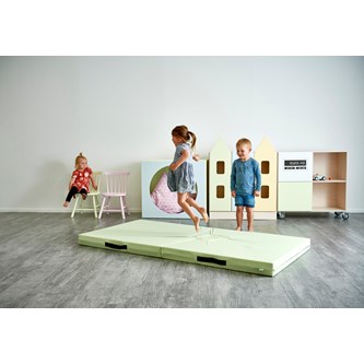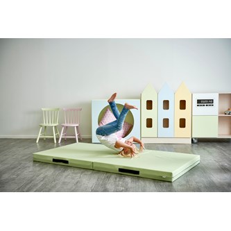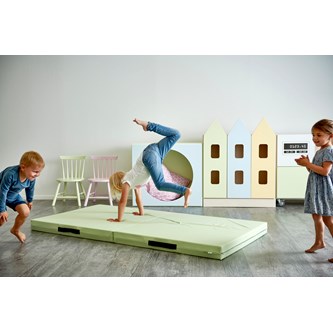 Svanenmärkt lekmadrass helt utan PVC, med kallskumskärna. Enkel att flytta med praktiska handtag. Passar bra vid lek eller olika aktiviteter. Avtorkningsbar med våt trasa. Av polyester. Mått: L200xB100xH10 cm. Svanenmärkt, licensnummer 3031 0084. Halkskydd ingår ej, köpes på separat artikelnummer 35571.