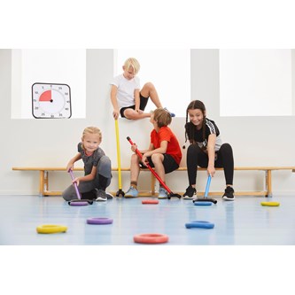 Ringar av gummi som kan användas till shuffleboard, men även många andra olika aktiviteter: kasta och fånga, rulla till varandra, som mål eller balansövningar. Ringarna glider bäst på vinylgolv eller polerat trägolv. Av gummi. Mått: ø 16 cm. PVC-fri.