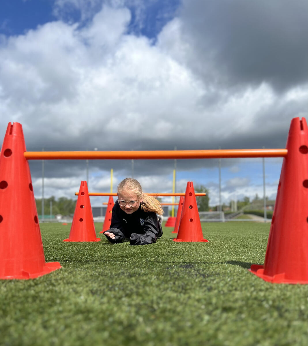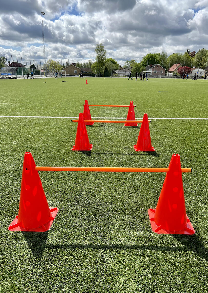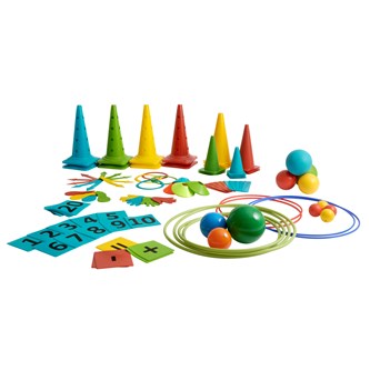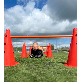 32 delar. Stor motorikbana som ger många möjligheter till en mer aktiv skoldag och rast. Innehåller: 6 koner med hål, 8 fästen till stav, 8 stavar till kon, 5 lekringar, 4 allroundkoner och 1 löpstege.