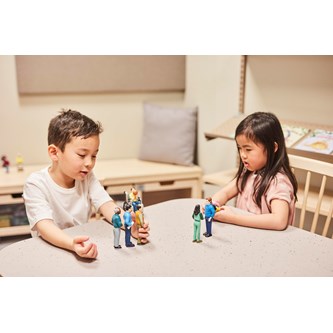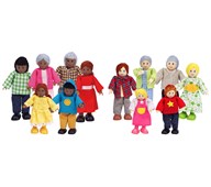 Ett set med lekfigurer i olika åldrar och med olika utseende. Utvecklar barnens förståelse och respekt för olika roller, kön och mångfald. Av PVC, utan förbjudna ftalater. Från 3 år.