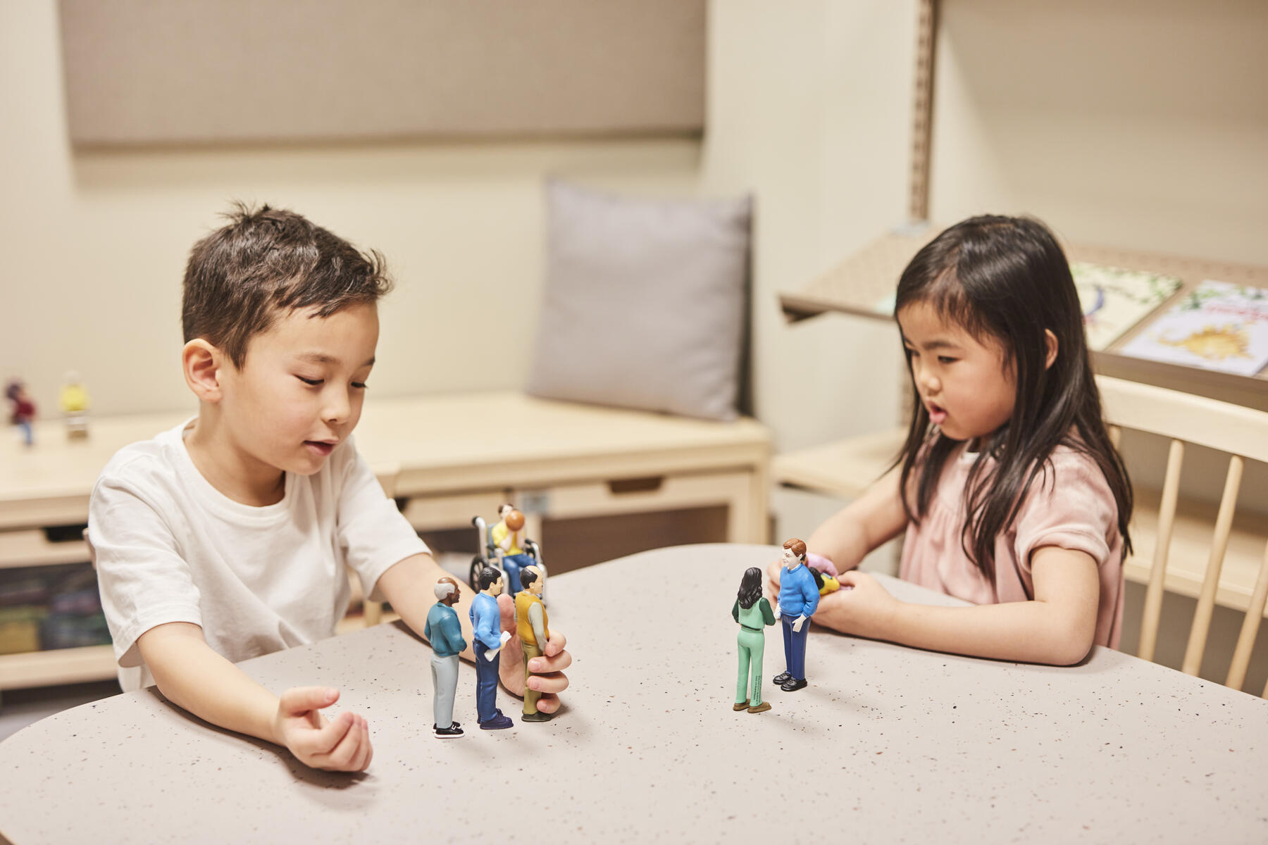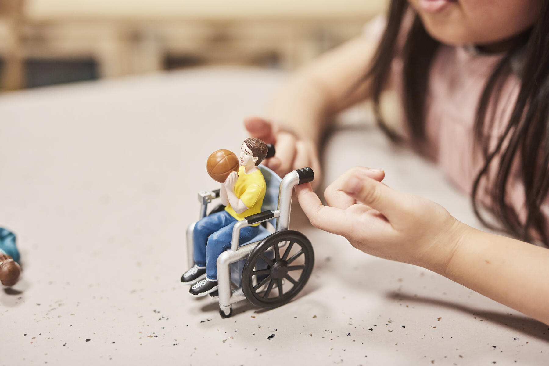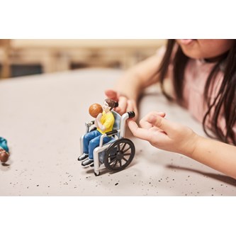 Lekfigurer med olika funktionsnedsättningar. Utvecklar barnens förståelse och respekt för olika roller, kön och mångfald. Av PVC, utan förbjudna ftalater. Från 3 år.