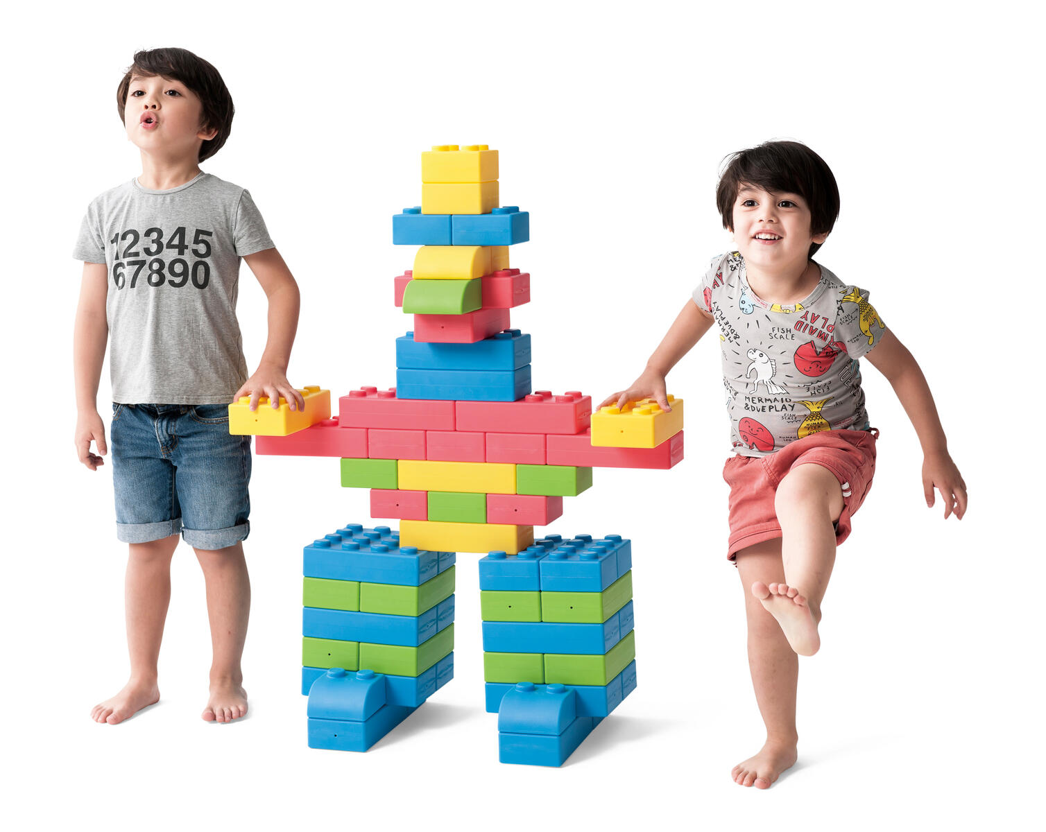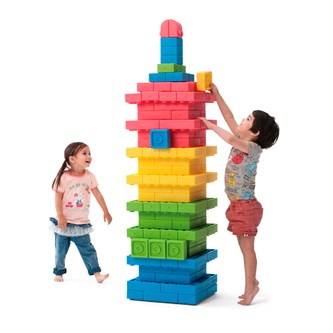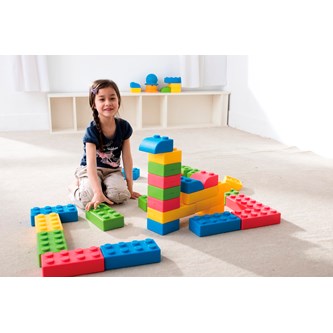 56 delar. Ljuddämpande klossar som kan användas för att leka ensam eller tillsammans med andra barn. Barnen övar sin förmåga att konstruera och utvecklar sin fantasi. Mått: ca 8–32 cm. Passar i 2 st förvaringsboxar 28279, ingår ej. Av EVA. PVC-fri. Från 2 år.