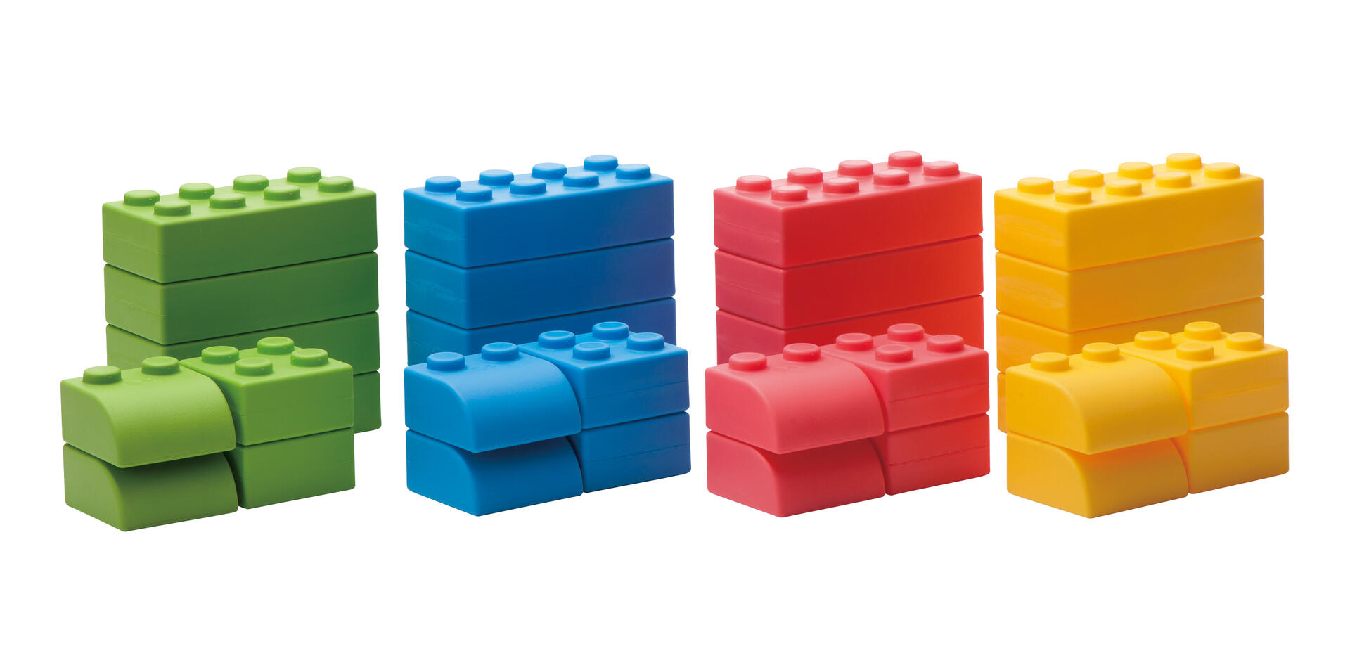96 delar. En stor sats med tysta och härliga byggklossar i glada färger. De 3 olika, stora formerna har låg vikt och är enkla att bygga med. Mått rektangel 21x10 cm och kvadrat 10x10 cm. Av TPE. PVC-fri. Från 1,5 år.