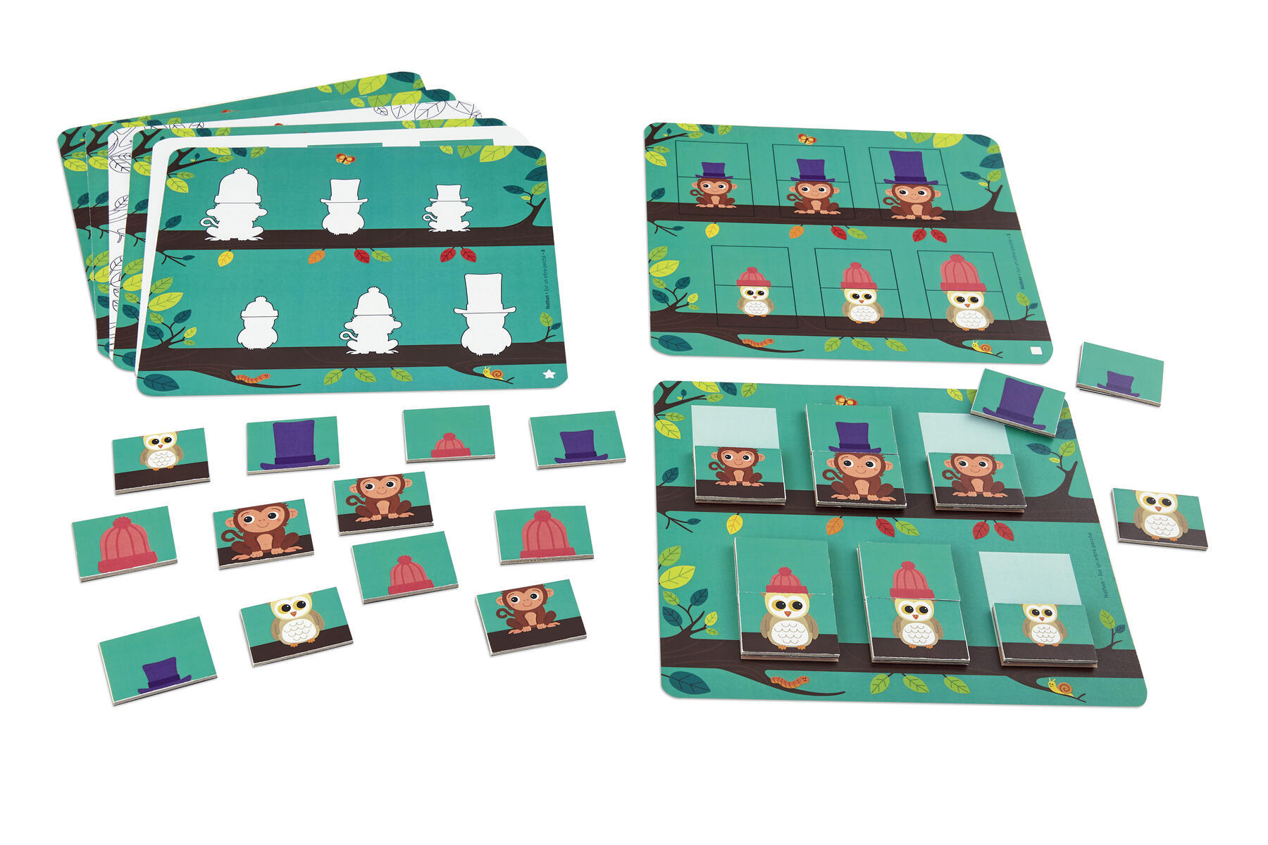 Ett pedagogiskt spel där barnen tränar observationsförmåga, logiskt tänkande och rumslig medvetenhet genom att sortera i storlek och placera efter begreppen på, över, mellan, större etc. Uppgifterna på aktivitetskorten har stigande svårighetsgrad. Innehåller 2 magnetkort, 24 små magnetiska bildbrickor, 6 instruktionsbrickor och engelsk handledning. PVC-fri. Lagom för 2 barn från ca 3 år och uppåt.