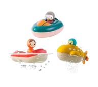 3 st/fp. Låt barnen dyka ner under vattnet med ubåten, köra fort med racerbåten eller var behjälplig med kustbevakningsbåten. Måttexempel på ubåt, längd: 12,4 cm. Av återplanterat gummiträ. PVC-fri. Från 18 månader.