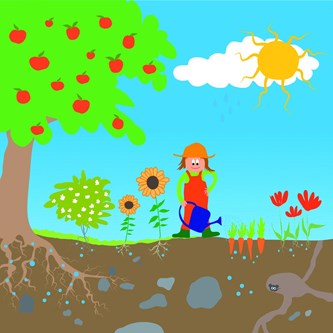 Äppelträd med 10 st sittdynor. Väggdekoration som hängs på väggen och fungerar som ljudabsorbent. Barnen kan själva plocka äpplena. Äpplena kan sedan användas som sittkuddar vid samlingar etc. Mått: Träd 125x125 cm. Mått på sittkudde: ø 25 cm, tjocklek 6 cm. Tyg på sittkudde avtagbart och tvättbart i 30 °C.