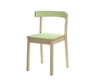 Massiv björk med formpressad sits och rygg. Sits belagd med linoleum. Med ljuddämpning under sitsen. Stapel- och upphängningsbar. Sitthöjd 45 cm.
