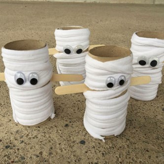 - Linda garnet/lakansväven runt papprullen. Här kan man även använda lite lim för att fästa änden.