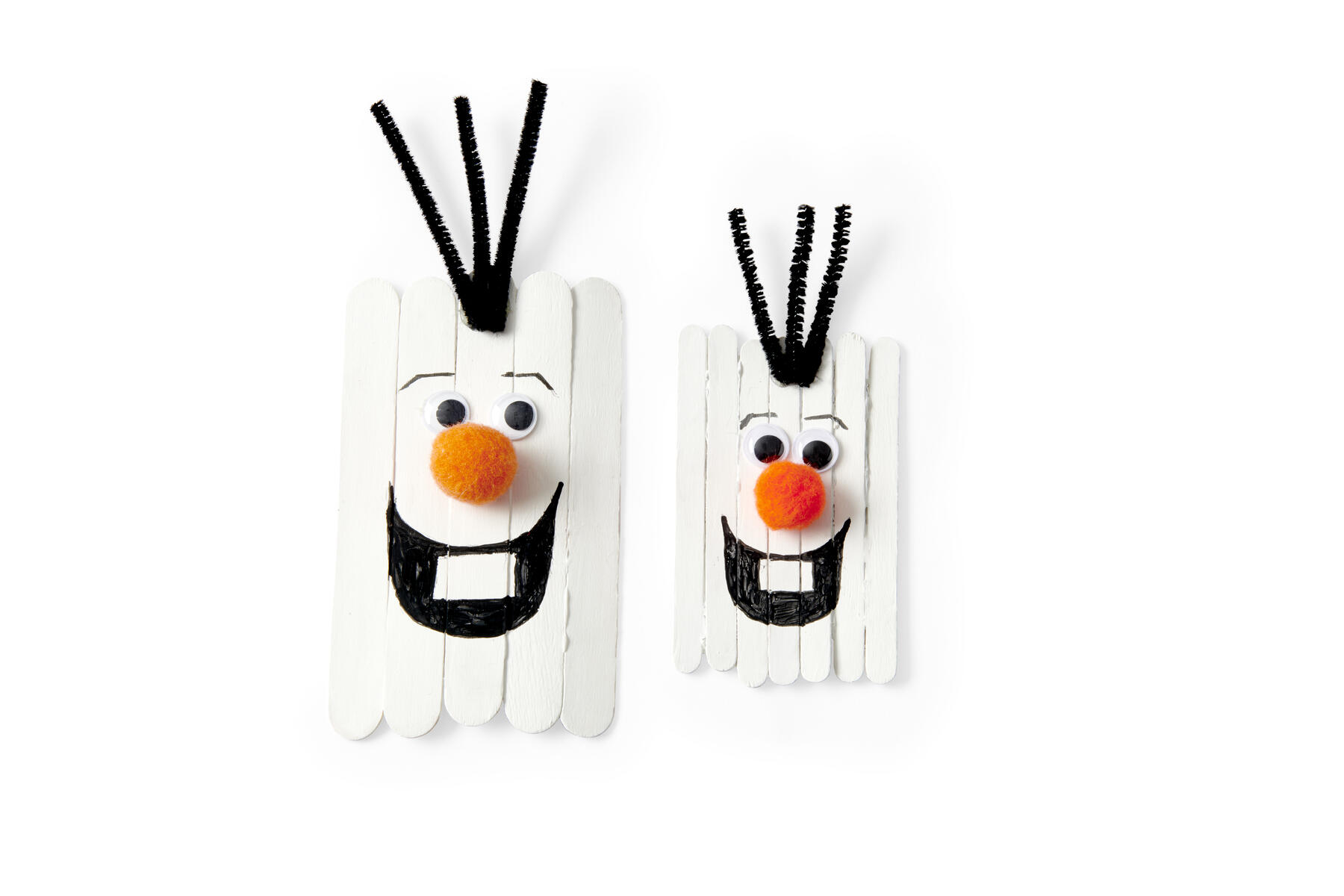 - Här har vi gjort Olof både med stora och små glasspinnar.