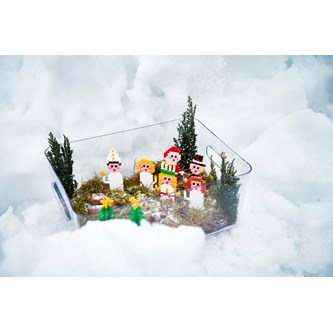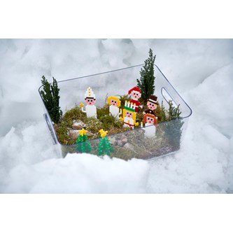 5. För en snöeffekt kan man pudra över lite låtsassnö. Barnen har sedan skapat sig ett tittskåp att njuta av hela vintern.