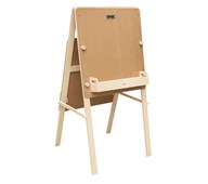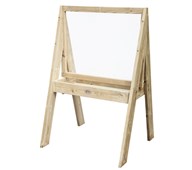 Stadigt tvåsidigt staffli med paneler i plywood. Panelerna är utrustade med clips och förvaringshylla och kan justeras i höjd. Mått: 121x63x60 cm. Levereras omonterat. Monteringsanvisning medföljer. Tillverkat av lackad björk. FSC-märkt. PVC-fri.