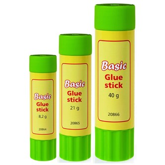24 st/fp. Vattenbaserat, vitt lim som torkar transparent. För papper, kort, foto m.m. Hylsa av polyetenplast. PVC-fri.