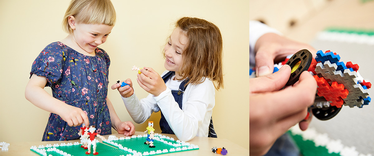 Med PLUS-PLUS byggklossar får barnen i förskolan, skolan och fritids träna färger, former, siffror, bokstäver, motorik, konstruktion, matematik och så mycket mera. PLUS-PLUS byggklossar är 100 % återvinningsbara och tillverkade av livsmedelsgodkänd plast, helt fri från PVC och Ftalater. PLUS-PLUS är ett pedagogiskt läromedel som finns i olika storlekar vilket ger byggleken oändliga möjligheter. Klossarna är tillverkade i Danmark och uppfyller kraven för Giftfri förskola. PLUS-PLUS går dessutom att tvätta. Lägg dem i en tvättpåse och tvätta på max 90 grader i tvättmaskinen eller i diskmaskinen. Det går också bra att diska dem för hand med tvål och vatten och/eller handdesinfektion.