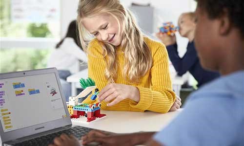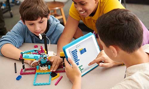 SPIKE™ Essential är idealisk för årskurs 1–5. Eleverna kan välja mellan ikonbaserad programmering eller Scratch-programmering och lär sig begrepp, problemlösning, matematiska färdigheter samt social och emotionell intelligens.