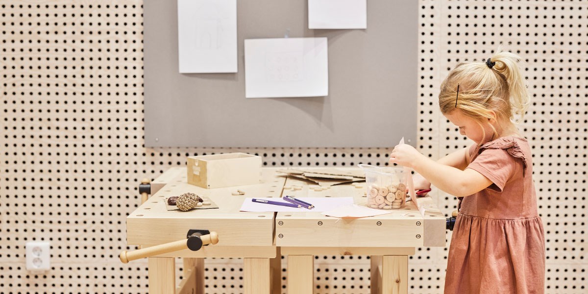Och sist men inte minst har vi också adderat en hyvelbänk i perfekt storlek för barn i förskoleåldern. Det ger möjlighet till skapande på andra sätt än vid ett vanligt bord där barnen kan utforska olika sätt att arbeta med olika typer av material.
