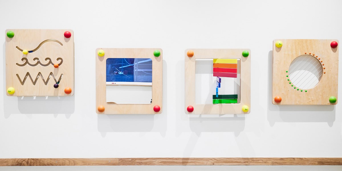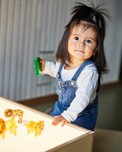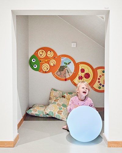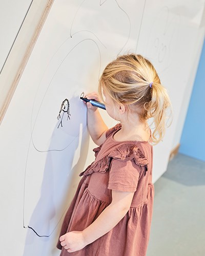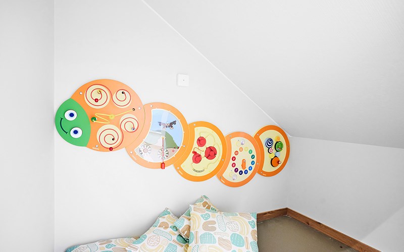 Välkommen in att uppleva (på väggarna)! Att ge barnen en upplevelse vart dem än går på förskolan är ett bra sätt att stimulera sinnena och låta dem testa och utforska. I upplevelserummet har vi valt att sätta upp ett antal lekpaneler, väggtavlor, en väggbana och lysande bollar. En plats där både barn och vuxna får svårt att låta bli att börja leka.