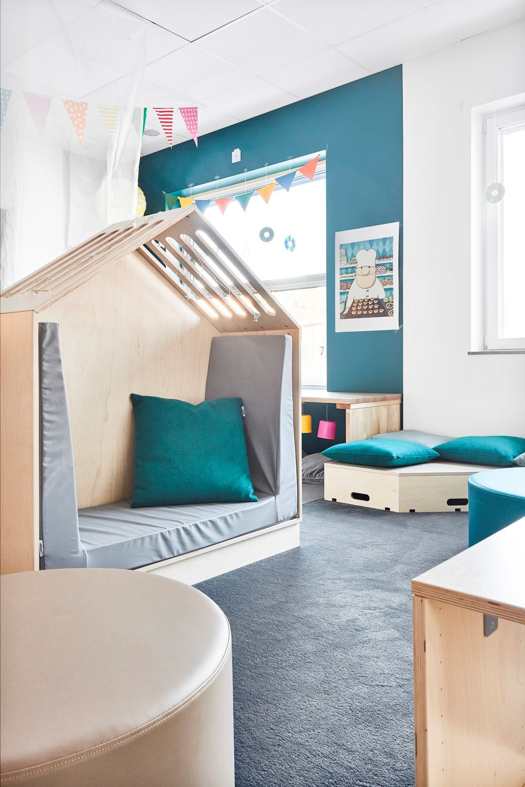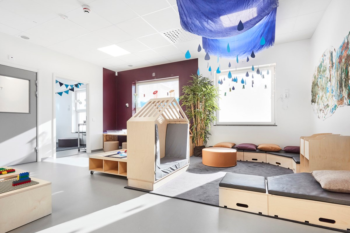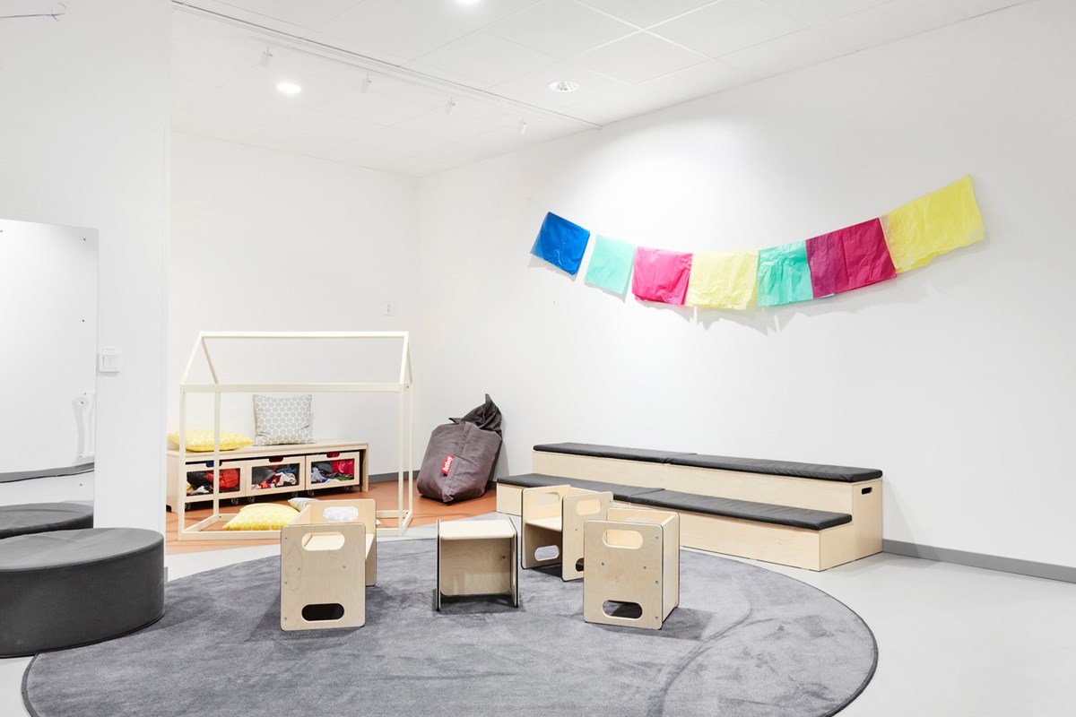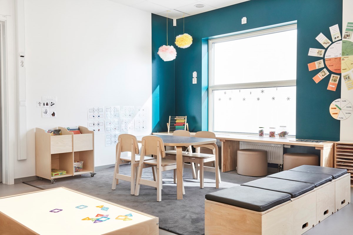 Lärmiljöerna på Mörmoskogens förskola är inredda för att fungera för både mindre och större grupper och avskilda miljöer kombineras med generösa gemensamhetsytor. När Lekolar inredde lärmiljöerna på Mörmoskogens förskola var förskolans önskan att skapa en förskola som ska kännas trygg och vara stimulerande och utmanande för alla åldrar.
