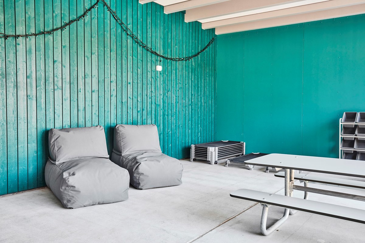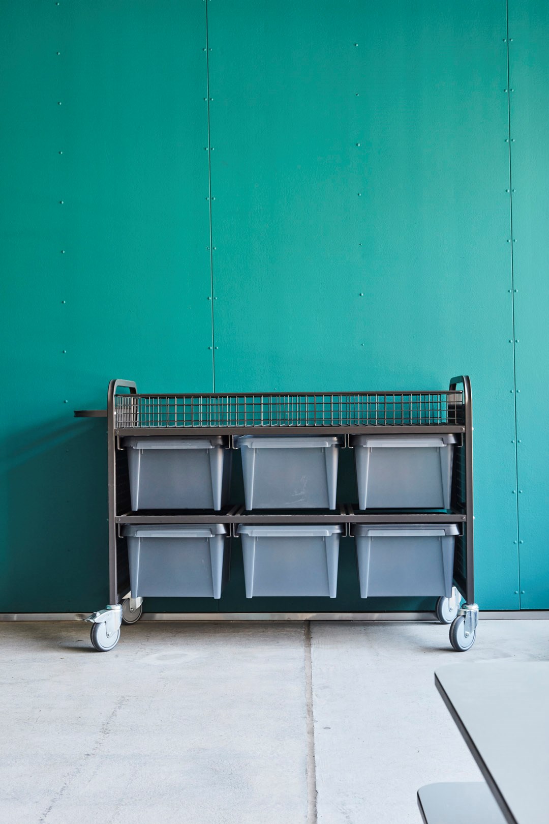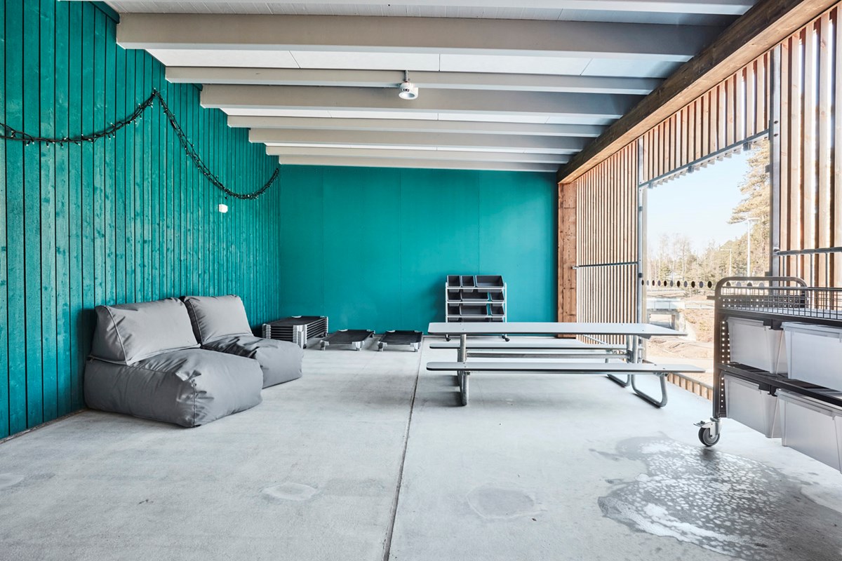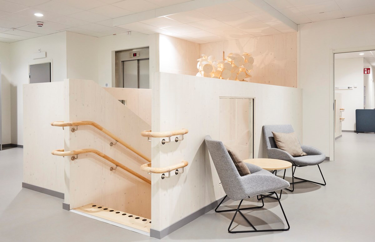 Personalrummet har en lugn och trivsam miljö med gott om plats för olika typer av sittande med soffa Platinum och fåtöljer Size. Mattorna Rossini skapar en ombonad känsla och är också ljuddämpande.