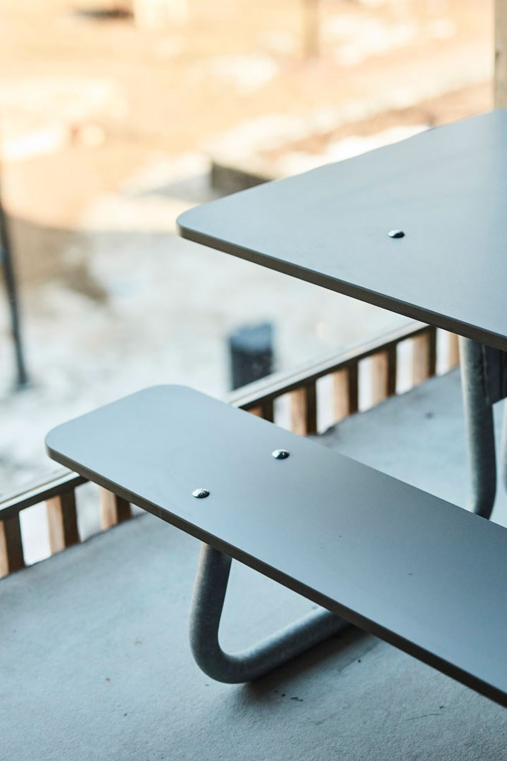 Den härligt rymliga uteplatsen bjuder på plats för både vila och aktiviteter. På bilderna syns fåtöljen Zipp, Rörvik picknickbord, Wille förvaringsvagn och stapelbara sängar som lätt går att ta fram eller stuva undan vid behov.