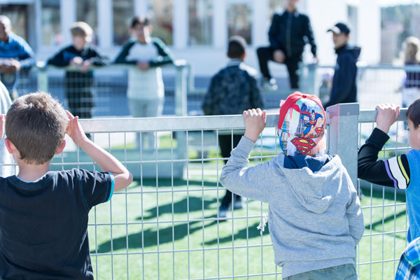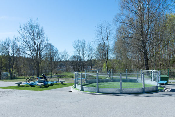 På Kringlaskolans nya bollplan med konstgräs spelas det Panna för glatta livet. Panna är en smart lekplatsutrustning - en snabb variant av fotboll som utmanar tekniken och reaktionsförmågan.