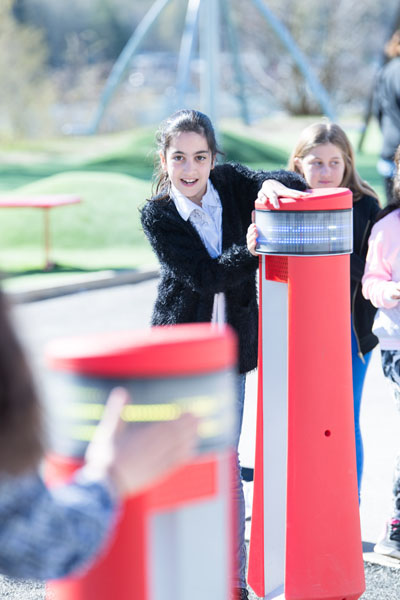 Med MEMO lekplatsutrustning kan barnen välja allt från att lösa matematikuppgifter till att träna engelska.