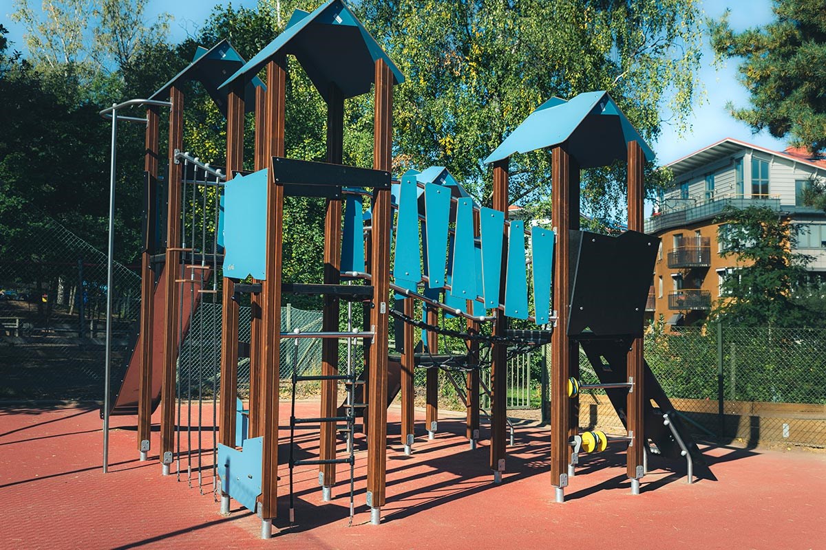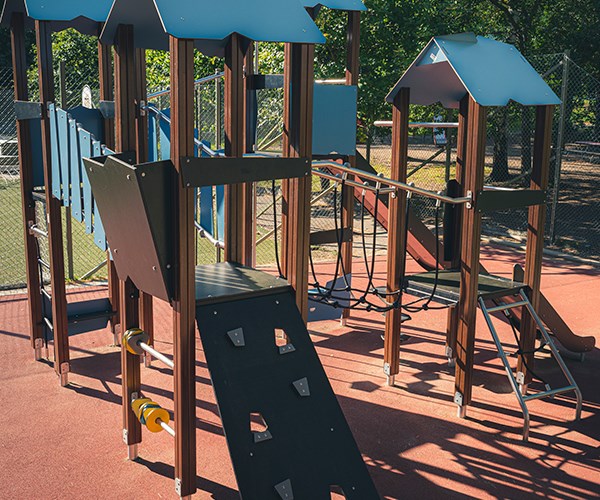 4 aktivitetstorn med 2 rutschkanor, bro med staket, bro med rep, klättervägg och stege med rep. HDPE-paneler i multifärgad och HPL-paneler i övriga färger. Vid installation ska alltid den medföljande manualen användas. Den senaste versionen finns att tillgå på begäran. Leverantörens artikelnummer WD1412