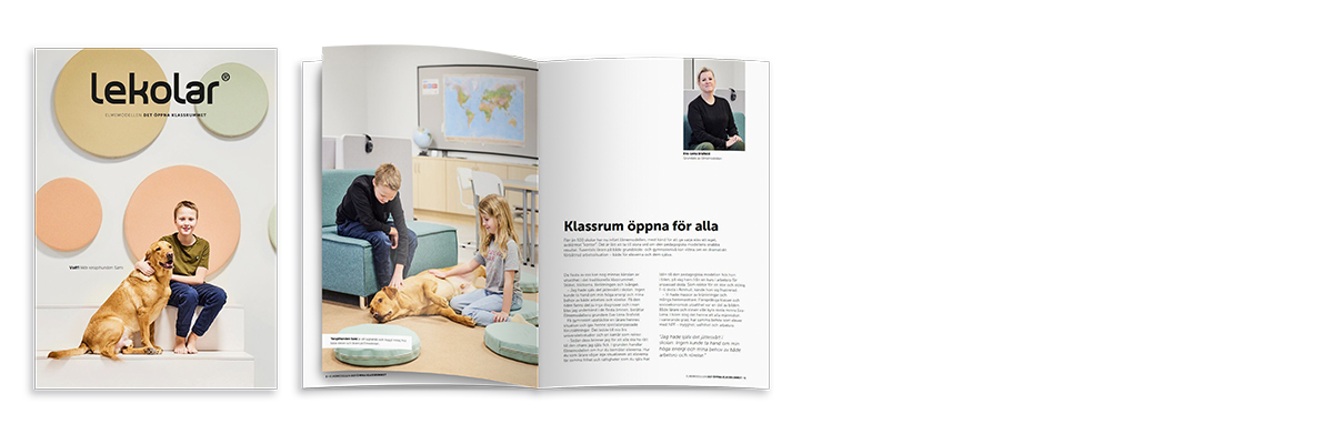 Under 2023 besökte vi Elmeskolan för att intervjua lärare och elever tillsammans med grundaren av Elmemodellen. Vi fick också träffa terapihunden Sami och prata kompensatoriska hjälpmedel med mentorn Julia. Läs mer om besöket i vår folder HÄR eller lyssna på den filmade intervjun. Vill du beställa hem ett fysiskt exemplar av foldern? Vänligen kontakta vår kundtjänst på kundtjanst@lekolar.se.