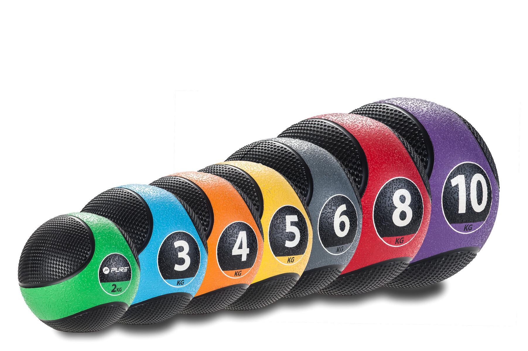 7 st/fp. Medicinboll av gummi med struktur som ger ett fast grepp. Med hjälp av medicinbollen stärker man muskler, koordination och balans. Fyll eller töm bollen på luft efter behov med vanlig pump. Innehåller vikterna 2, 3, 4, 5, 6, 8 och 10 kg. Av 100 % gummi.