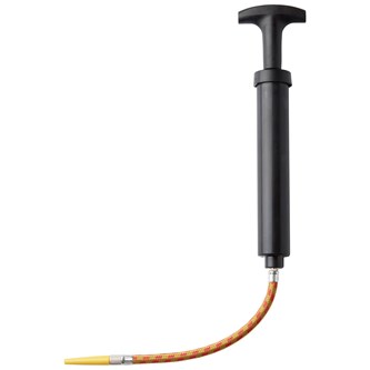Pump med slang och plastnippel. Praktisk till att pumpa bollar, luftmadrasser och vissa cykeldäck. Mått på pump 21 cm, mått på slang 16 cm. Metallnipplar köpes separat art. 75271. Tub av polyester, handtag av PP.