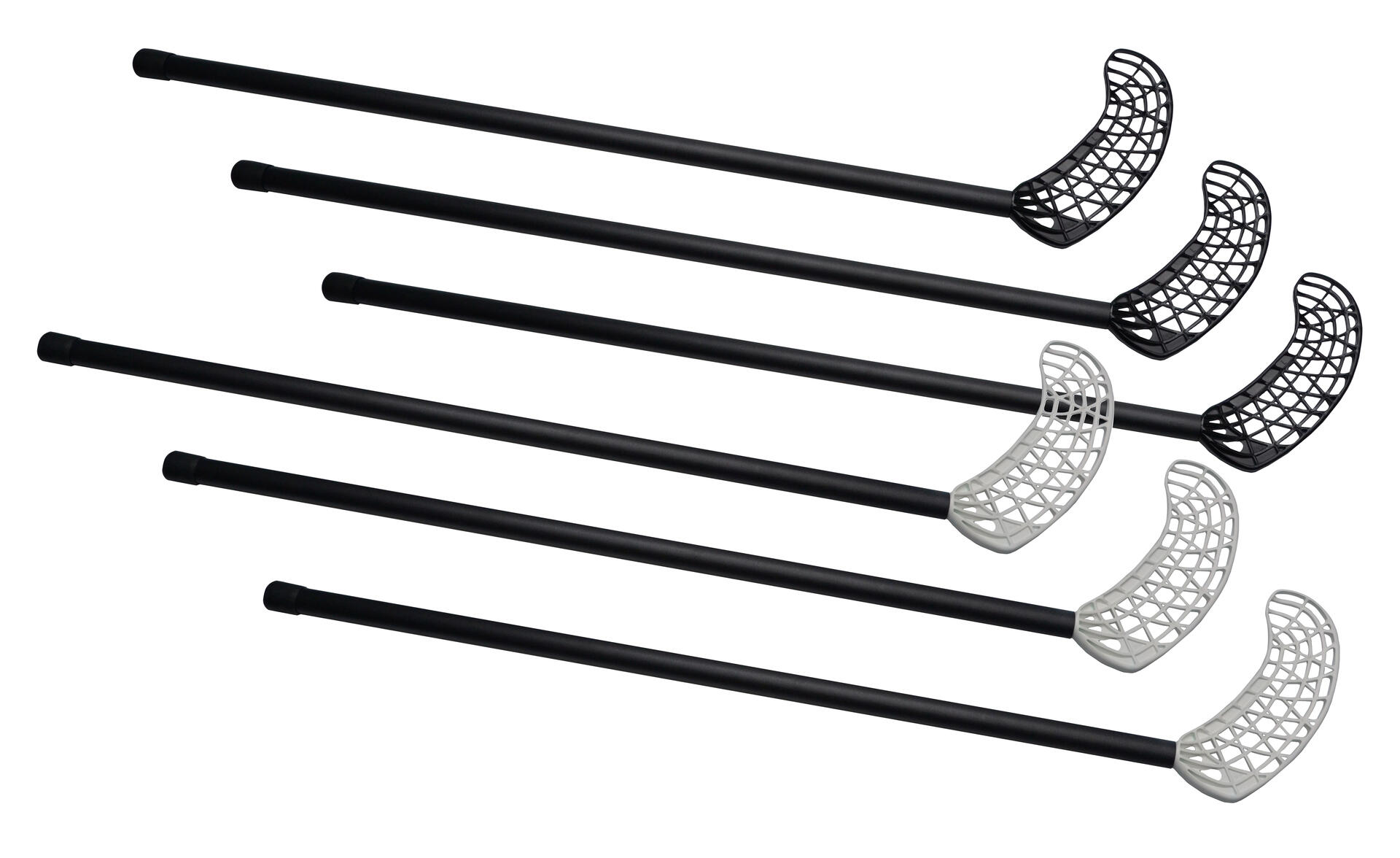 Storpack med 12 klubbor i två olika färger samt 6 bollar. Klubba för tuffa underlag, mycket slitstark. Totallängd 115 cm, skaftlängd: 95 cm. Polyetenplast. Vikt 251 g.
