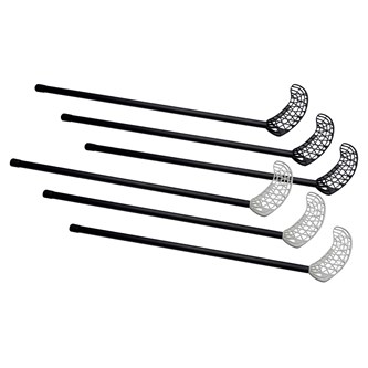 6 st/fp. Ett set med kvalitetsklubbor för skolan. En mycket slitstark klubba med glasfiberförstärkt karbonatskaft och blad av polyetenplast. Även för utomhusbruk. Totallängd 115 cm, skaftlängd 95 cm. Vänsterklubbor. Vikt 287 g.