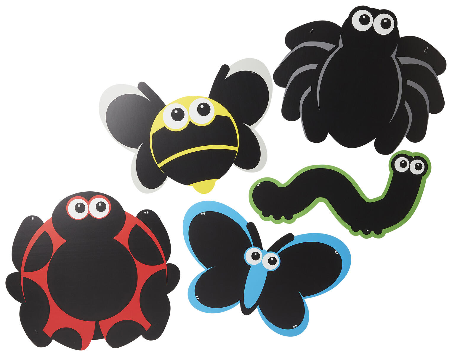 5 tavlor. Färgglada och vädertåliga svarta tavlor formade som fordon. Fäst dem mot stängsel eller staket och gör lekplatsen till ett roligt och spännande område att utforska. Innehåller 2 bilar, 2 flygplan och 1 lastbil. Mått lastbil: 85x96 cm. Buntband av plast som kan användas vid upphängning medföljer. Kritor köps separat, se artikel 46571. Från 3 år.