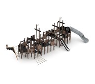Sex höga aktivitetstorn med sju rutschar. I övrigt finns det klätternät, klättervägg, klätterrep, koordinationspaneler, stegar, broar, brandmannastång och en liten gungrem. Se produktblad för materialspecifikation och övrig info. Vid installation ska alltid den medföljande manualen användas. Den senaste versionen finns att tillgå på begäran.