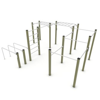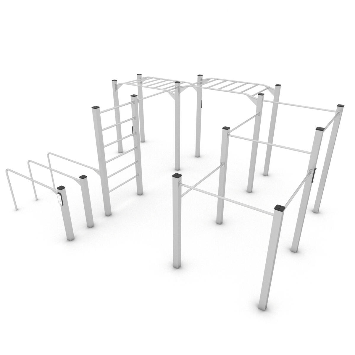 Workout är en serie träningsredskap främst avsedda för träning med kroppsvikten som utgångspunkt. Bas i pulvergalvaniserat och pulverlackerat stål. Färgen silver (-99) är tillverkad helt i rostfritt stål. Har en aluminiumskylt med träningsinstruktioner och QR-kod som leder till ett kort videoklipp med instruktioner. Leverantörens artikelnummer Workout 2327