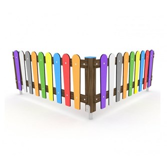 Cylindersvarvad palissad i robiniaträ. Kan placeras som en ram runt en sandlåda eller användas för att skapa olika nivåer. För exakta mått och övrig information, se dokument.