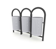 Kvadratperforerad papperskorg med helt lock för stolpmontage. Stolpe ingår ej. Korgen har separat, fällbar upphängnings anordning för plastpåsen.
