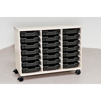 Förvaringsvagn med plats för 20 brickor. Välj mellan att köpa endast vagn eller vagn med brickor. Förvaringsvagn i metall med hjul, varav två är låsbara. Montering av hjul, gärna med låsbara på varsin kortsida.