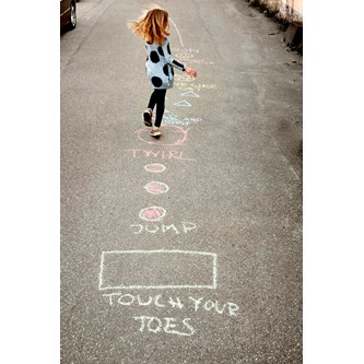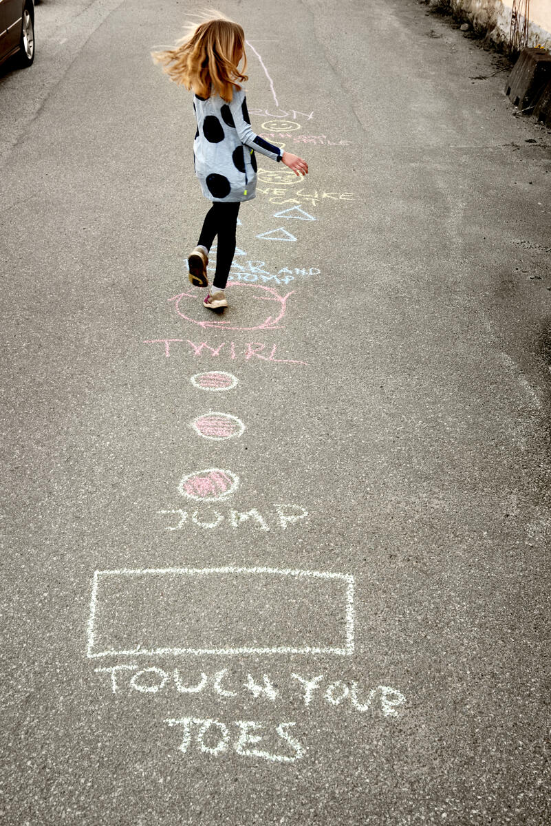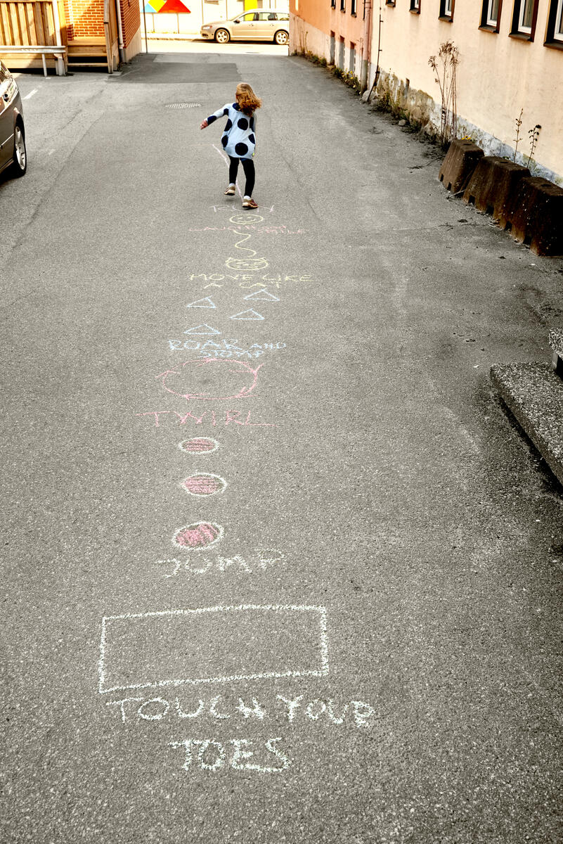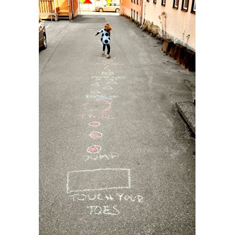 Rita t ex en fyrkant och skriv ”touch your toes”. Här ska barnen röra sina tår.